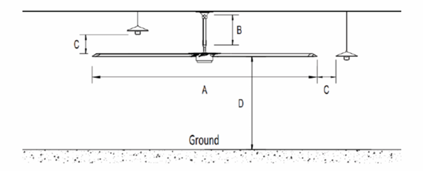 The fan comes with anti-falling locking system that secures it and the safety cables that provide double layer protection. All steels used are heavy duty and fasteners with Grade 12.9 that can withstand great stress. The blades comes with safety link mechanism that can absorb impact and prevent it from falling.